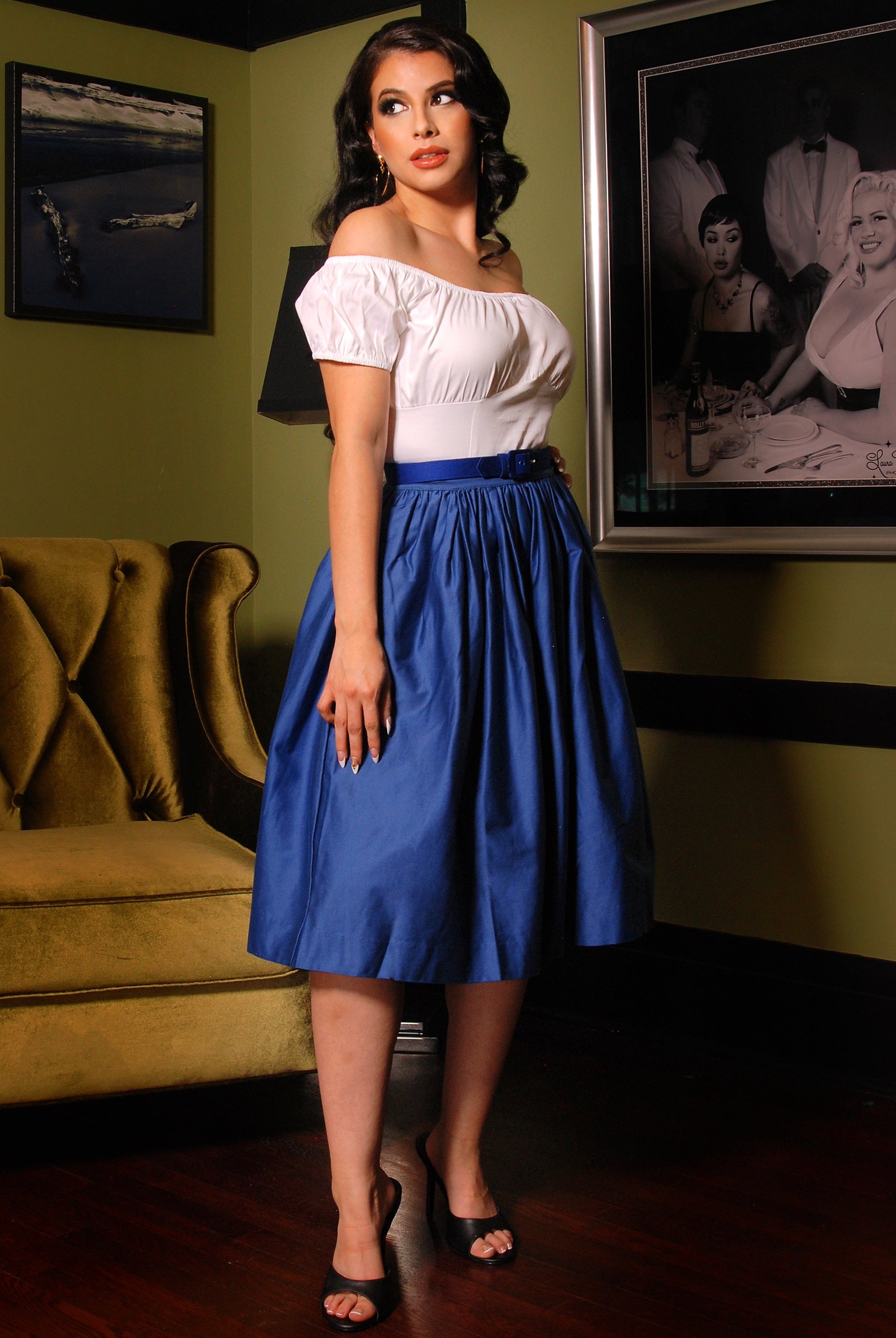 This gorgeous, cotton sateen separate is the perfect vintage inspired gathered swing skirt, with a 2" waistband and a sweep designed to beautifully showcase this classic silhouette. Add an Underskirt for a little extra poof (without the bulk). Skirt measures 24" from waist seam to hem, and features deep pockets.