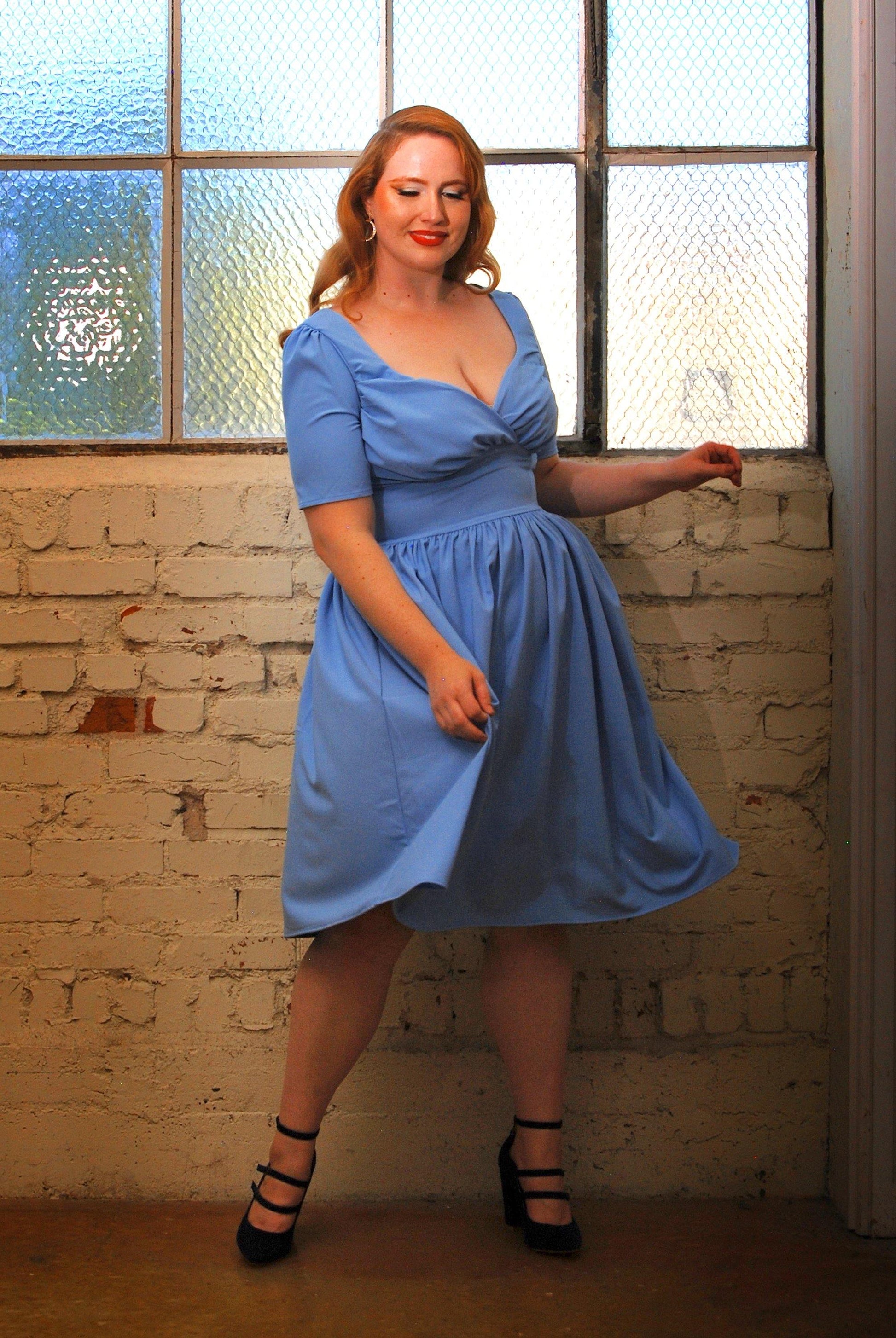 Paige Swing Dress in Chambray Poly Crepe | Pinup Couture