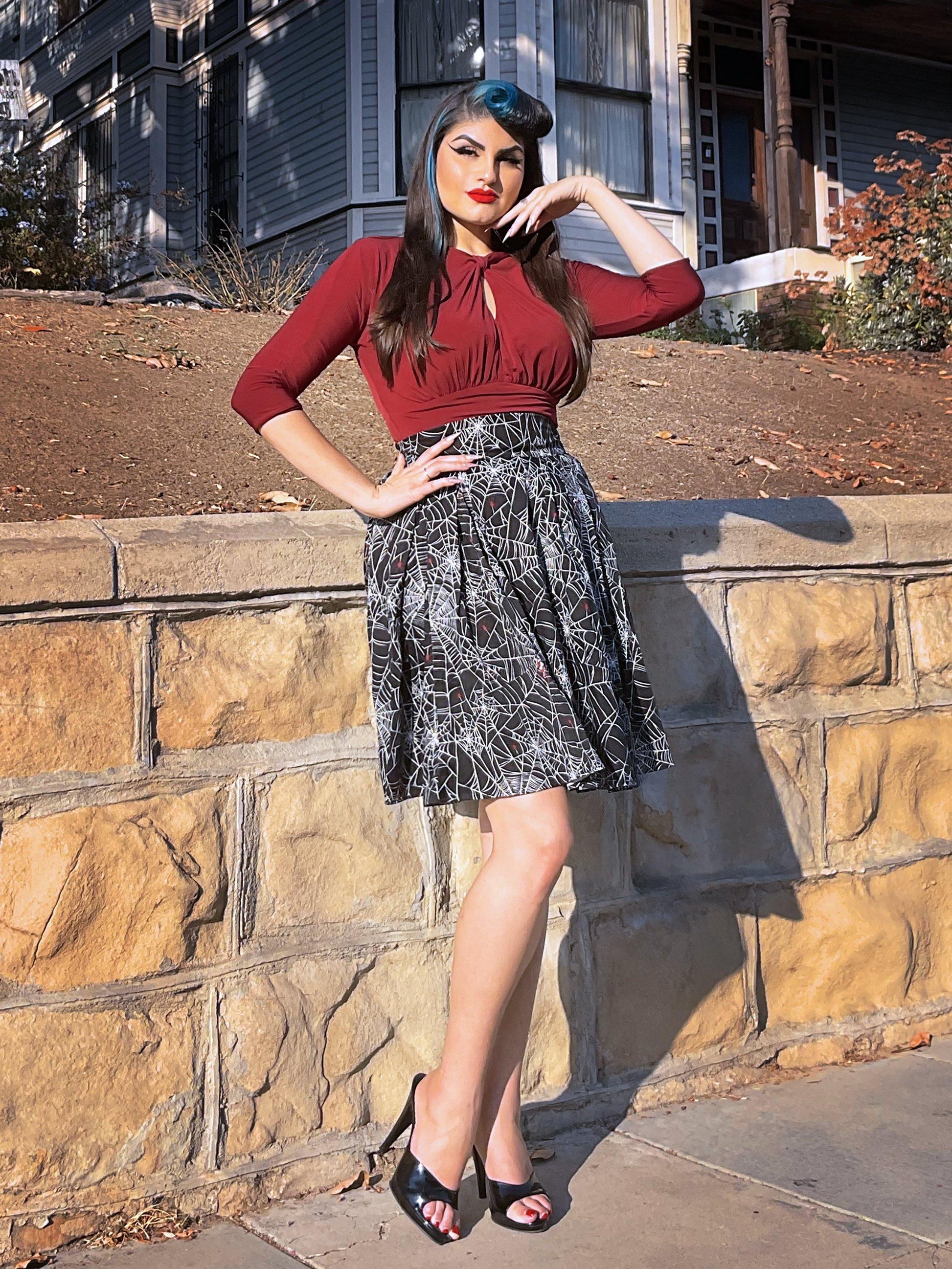 With its polished 40s silhouette and dramatic keyhole opening, the Malia Top is equal parts sultry and sophisticated. Made with a luxe stretchy matte knit fabric to drape beautifully over your body, the high neckline is enhanced by a head-turning keyhole opening with gathers under the bust to accentuate your curves. Fully lined in matching knit fabric, this 3/4 length sleeve top is finished off with a back zip for a sleek fit.