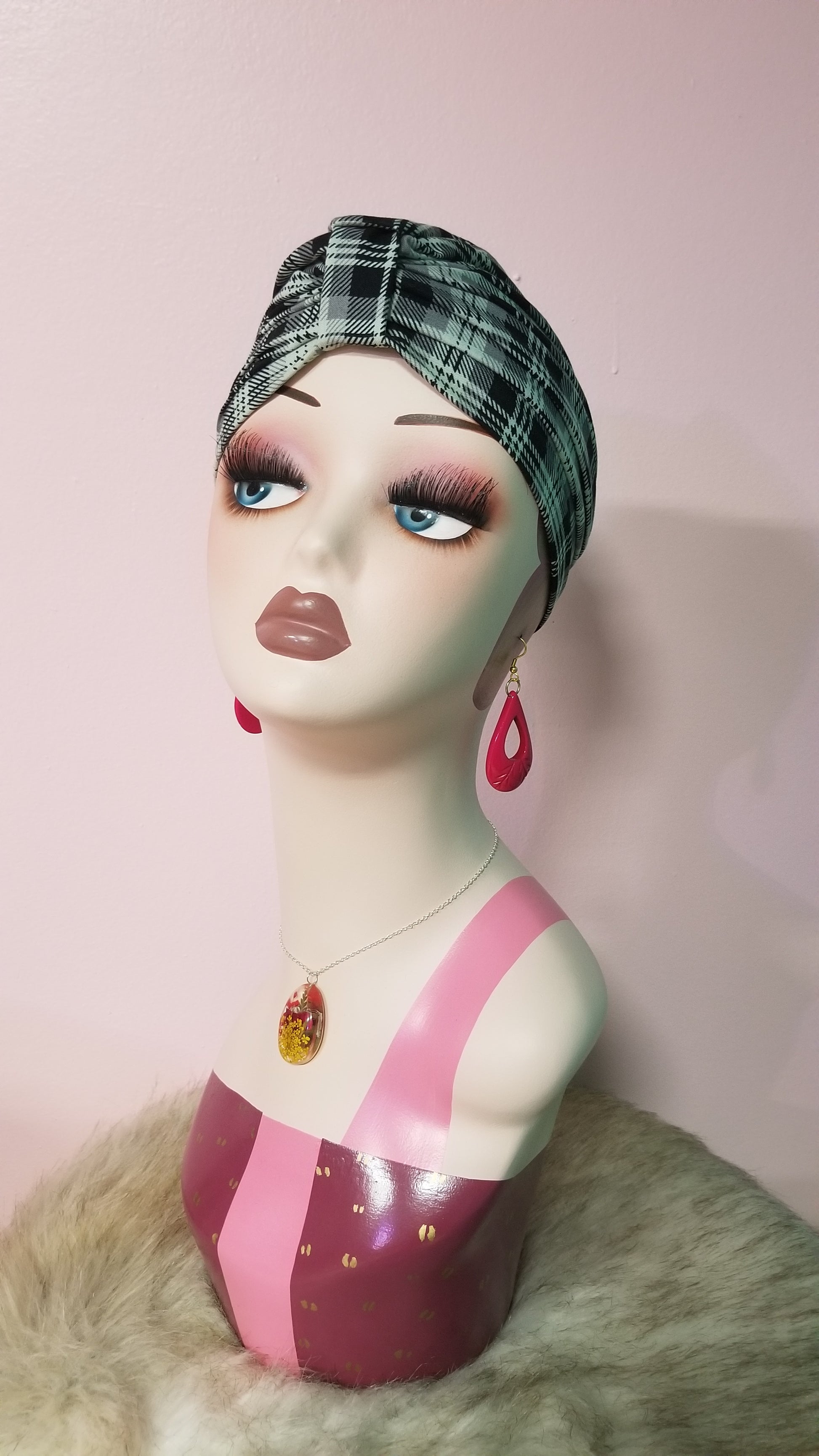 Black and White Plaid Turban by PMdesigns by Pamela Marie